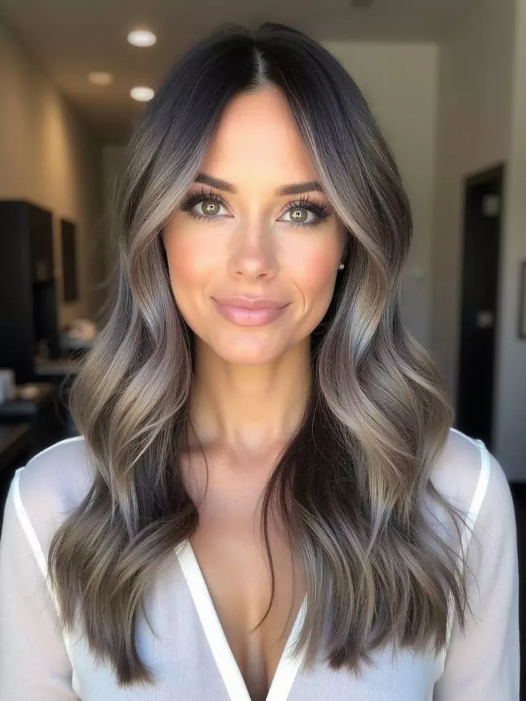 Long ash brown hair creates a glamorous and eye-catching hairstyle. The cool tones enhance the natural beauty of long hair while adding shine and depth. This color looks stunning with soft waves or straight styling. Many women love long ash brown hair because it feels elegant and modern. The length also helps showcase the color dimension beautifully. It gives the hair a luxurious and sophisticated look.
