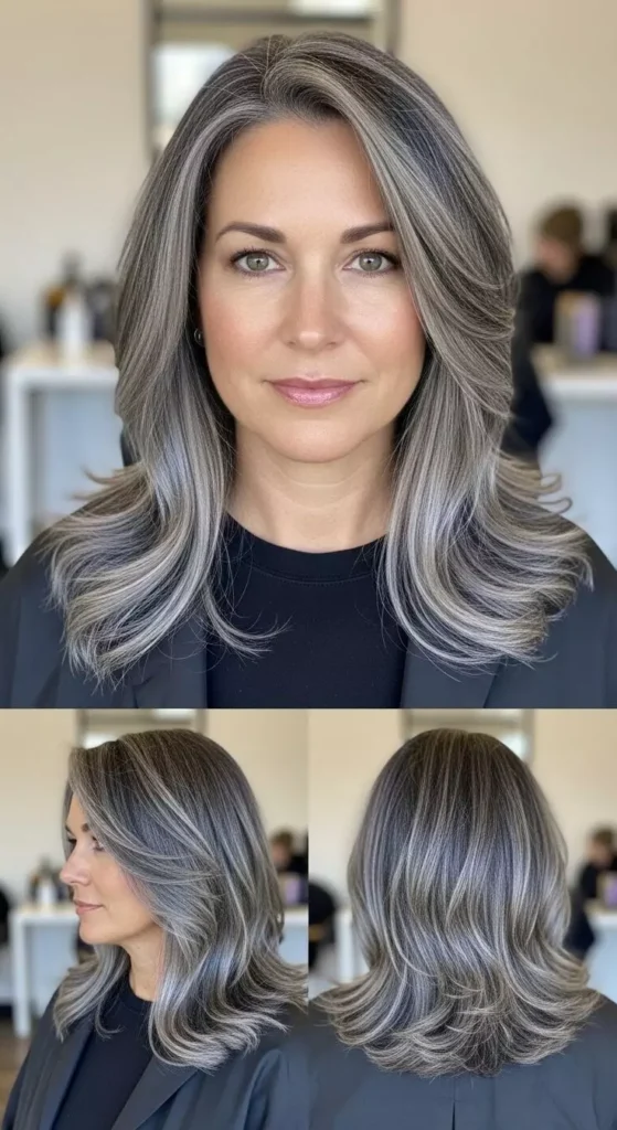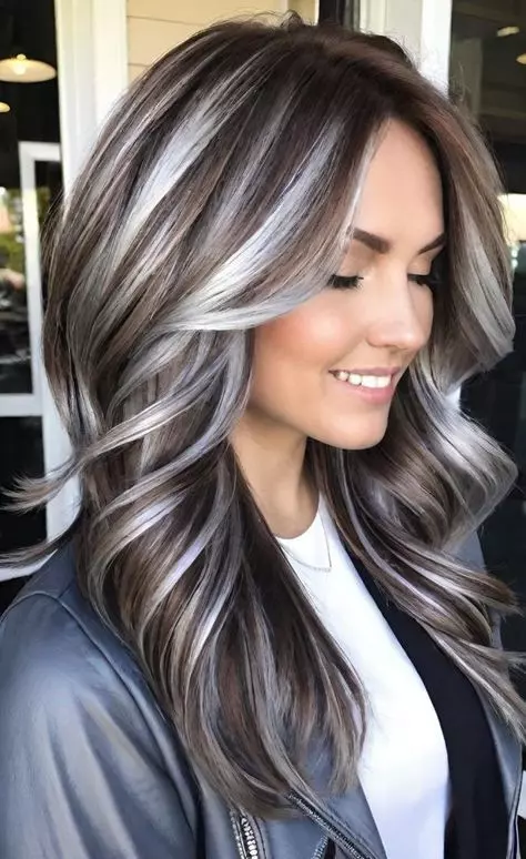 Ash Brown Hair with Silver Tones for a Cool Effect