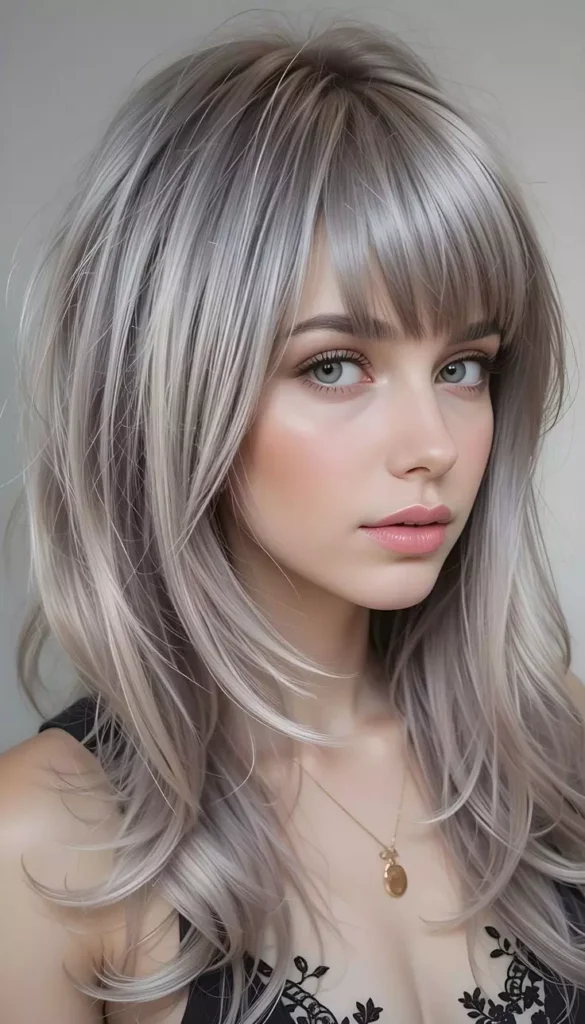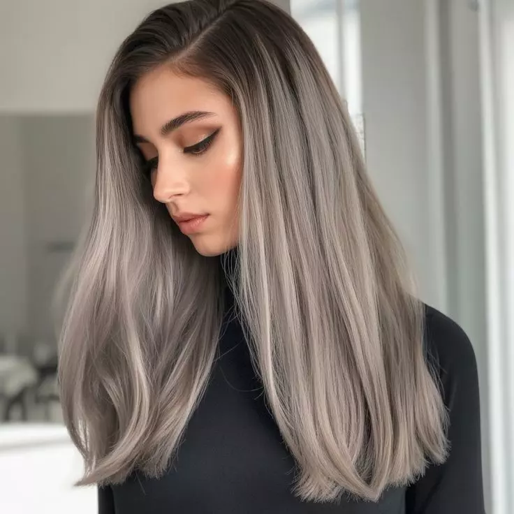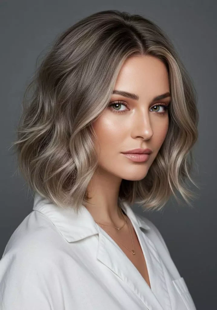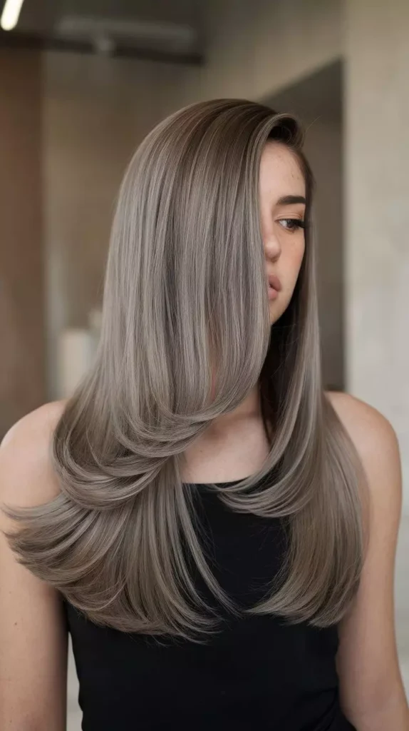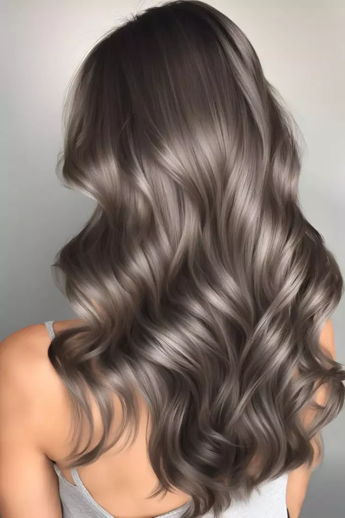 Ash brown hair with silver tones creates a cool and futuristic look. The silver undertones enhance the ash color and make the hair appear more dimensional. This combination is perfect for women who want a bold yet sophisticated hairstyle. It’s a stylish choice for modern hair trends. The silver tones also add brightness to the overall hair color. This makes the style look trendy and eye-catching.