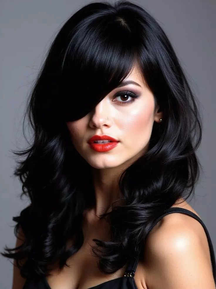 11. Black Hair with Side-Swept Bangs for a Trendy Vibe