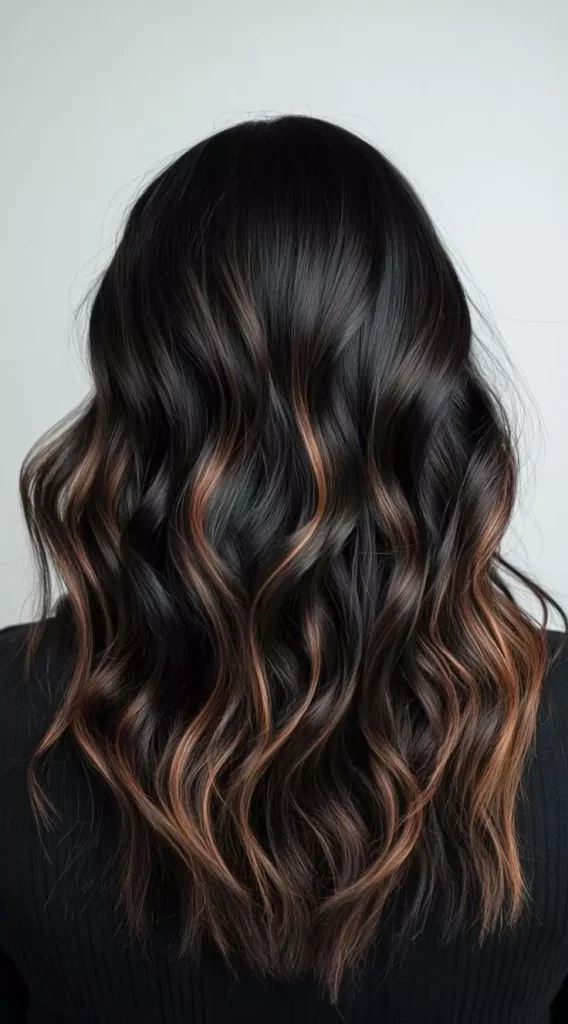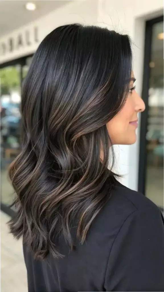This technique works beautifully for layered or wavy black hair, giving it a rich and dynamic look. Highlights can be placed around the face for a soft, flattering effect. Subtle highlights also make black hair appear more voluminous and textured in natural light.