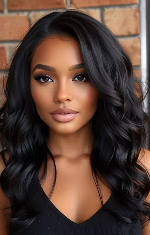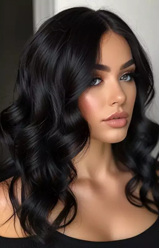 Black hair with soft waves creates a romantic and effortless hairstyle. Loose waves add volume and texture, making your black hair look lively and elegant. This style works well on both medium and long black hair.