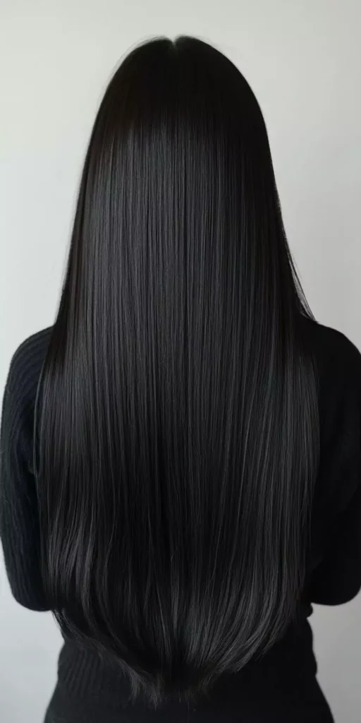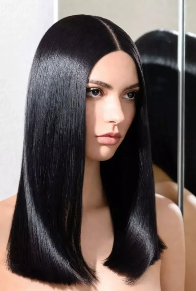 Sleek straight black hair is a timeless hairstyle that exudes elegance and sophistication. This classic black hair style works perfectly for formal events or everyday chic looks. With smooth, glossy strands, sleek black hair highlights natural shine and healthy hair texture.