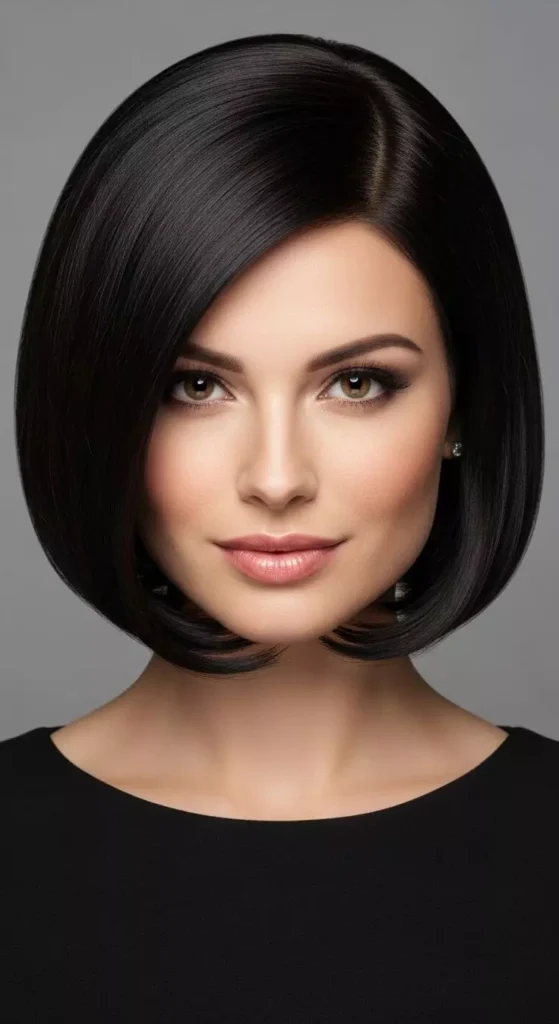 Pairing a black bob with glossy finishes boosts the overall sophisticated appearance. You can style a bob straight, wavy, or slightly curled at the ends for versatility. It’s also an excellent haircut for highlighting facial features and creating a bold, confident look.