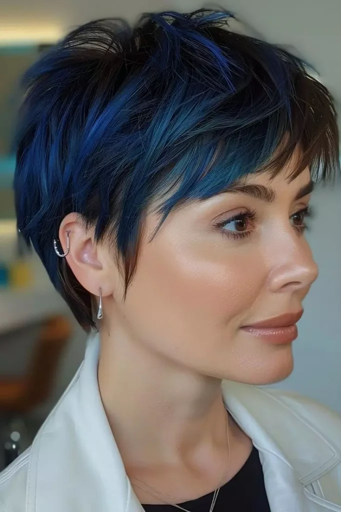Dark blue looks amazing on short, long, curly, wavy, or straight hair. Layered or pixie cuts also add extra dimension to the color.