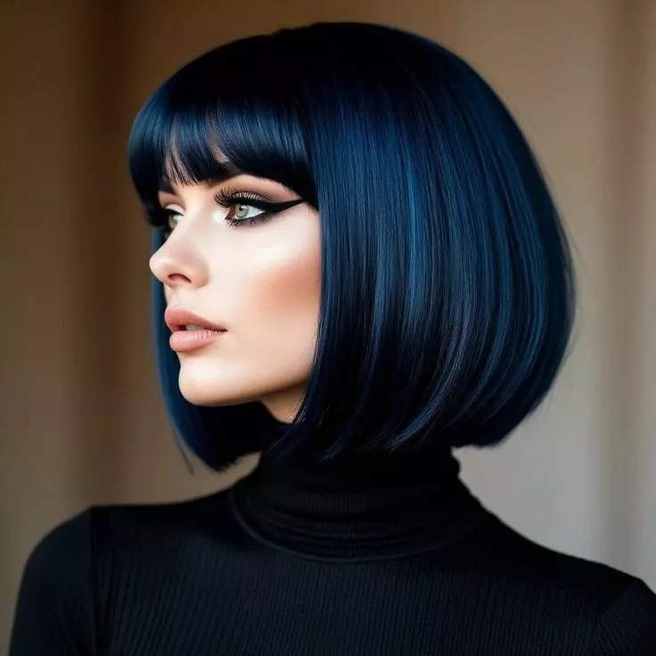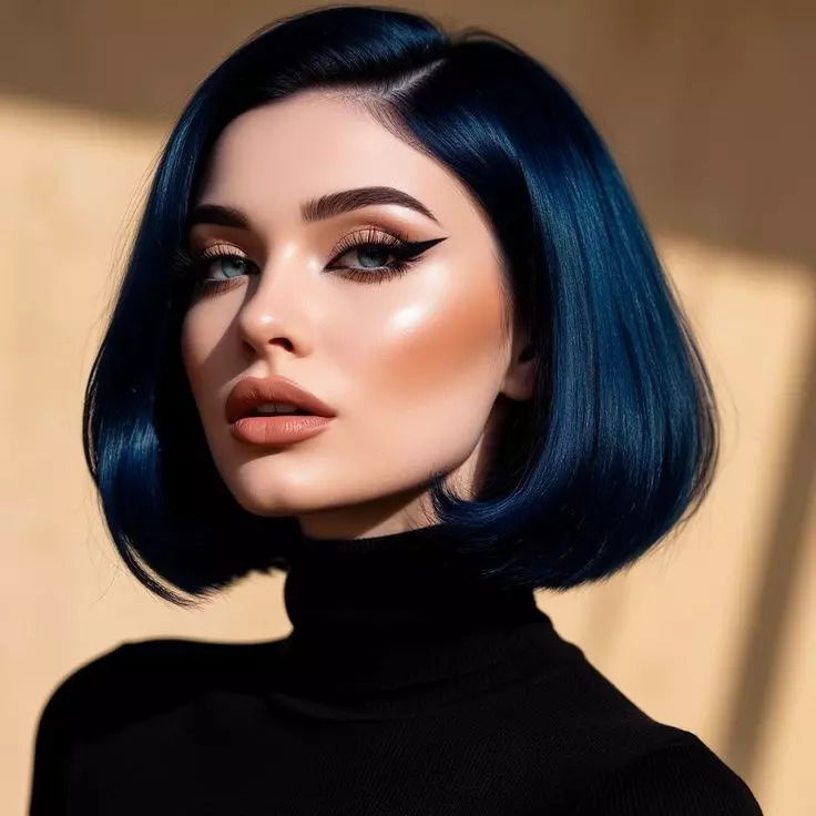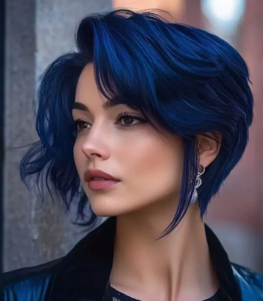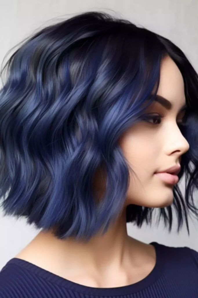 Make a statement with stylish short dark blue hair that turns heads everywhere. Perfect for bold fashion lovers. Combine with modern cuts like bob or pixie. Add subtle highlights for extra depth. Maintain with gentle shampoos and conditioners to preserve the shine. This style is ideal for both casual and formal looks. Styling with waves or curls can give extra personality.