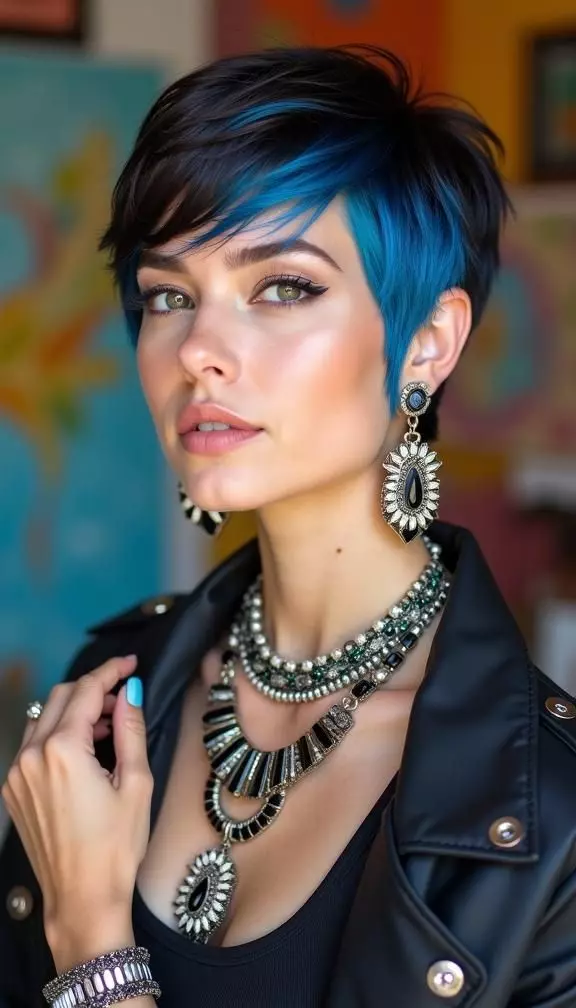 Transform your look effortlessly with easy short dark blue hair techniques. No salon visit is needed to get a bold, vibrant color. Short hair is perfect for bold experimentation. Avoid frequent washing to maintain color. Using nourishing masks keeps your hair soft and shiny while preserving the blue hue. This style works well for both straight and wavy hair textures. Regular trims keep short hair looking fresh and stylish.