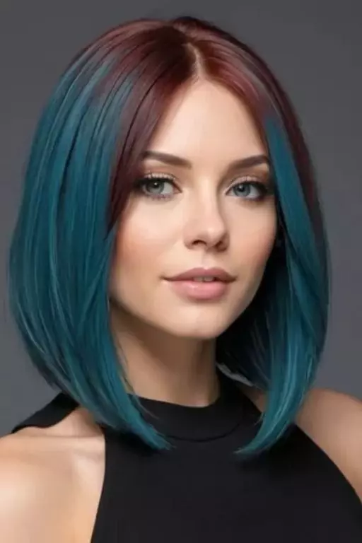 Teal hair blends blue and green tones to create a vibrant and eye-catching look. This color is bold, stylish, and perfect for individuals who enjoy experimenting with unique hair shades.