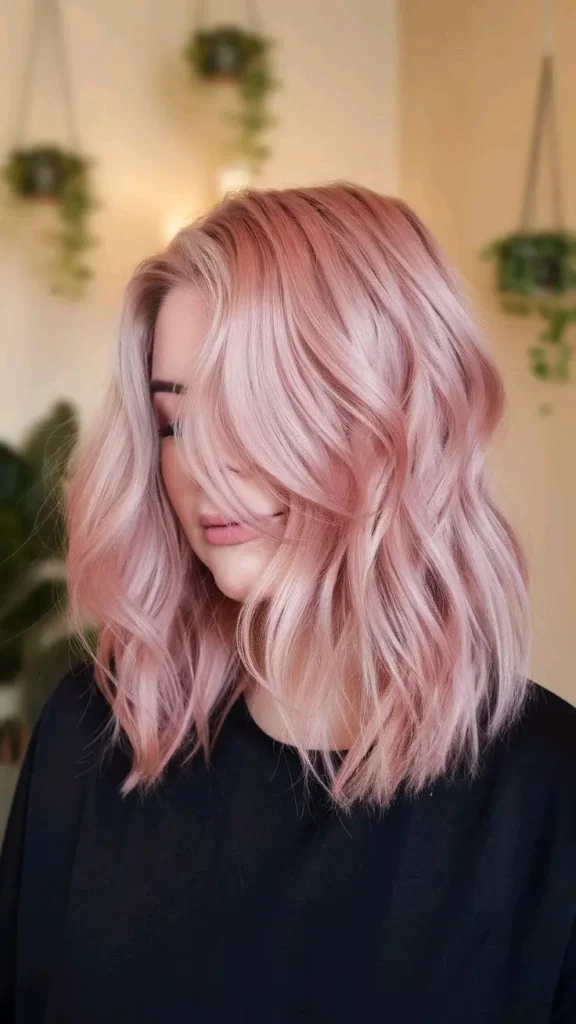 Rose gold hair works best on light blonde or pre-lightened hair because the soft pastel tones appear more vibrant on lighter bases. Many people love this shade because it looks unique without being overly bright or dramatic.