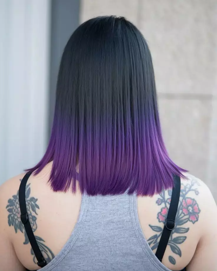 Purple ombre hair creates a dramatic and eye-catching gradient effect. The hair gradually transitions from darker roots to vibrant purple ends, producing a bold and stylish appearance. This color combination is particularly popular among individuals who enjoy creative and artistic hairstyles.