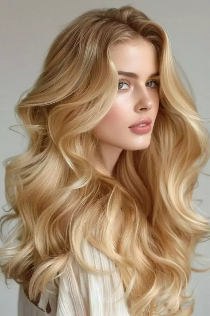 Golden blonde hair is a warm and radiant shade that adds brightness and softness to the face. The golden undertones create a natural glow, making the hair appear healthy and shiny.