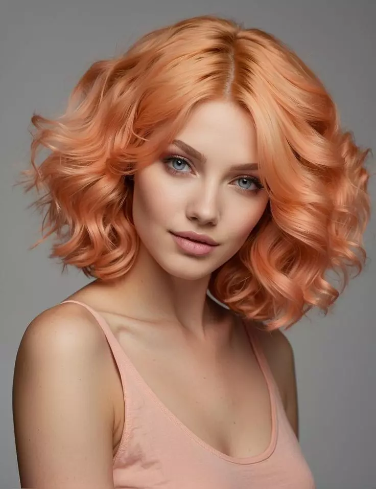 Peach hair combines soft orange and pink tones to create a delicate pastel shade. This color looks fresh, playful, and extremely trendy.