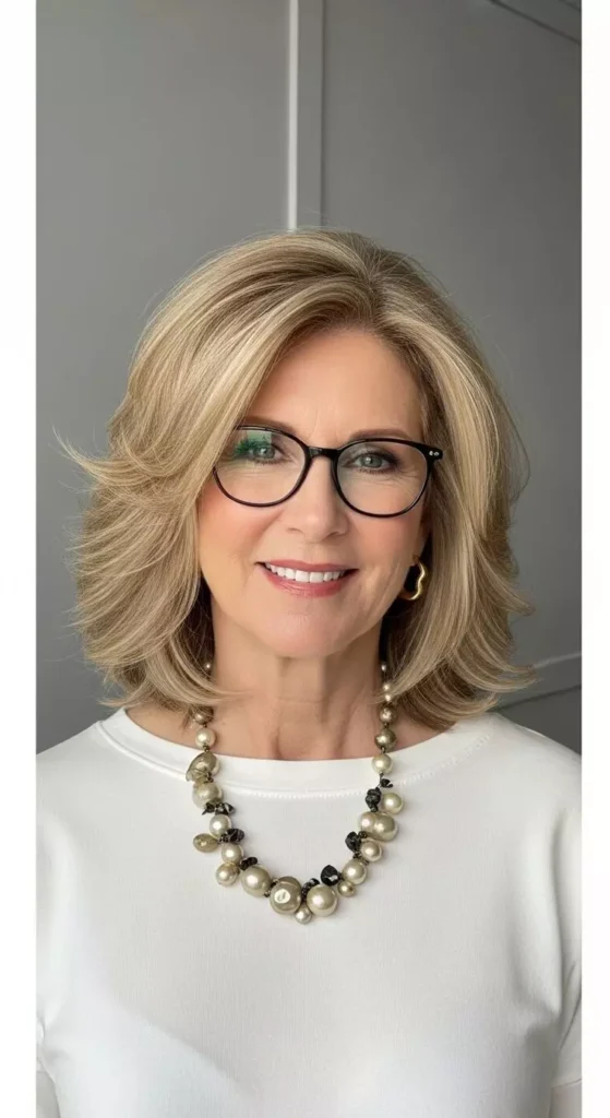 Hairstyles over 50 with glasses should complement your frames and face shape. Short bobs, layered pixie cuts, and side-swept bangs pair beautifully with eyewear. The right hairstyle can balance facial proportions and enhance your features. These hairstyles for women over 50 create a smart and sophisticated look. Consider the size and style of your glasses when selecting a haircut. A well-matched hairstyle and frames can elevate your overall style.
