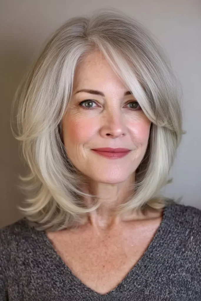 Medium hairstyles over 50 offer versatility and balance between short and long hair. Shoulder-length cuts with soft layers are flattering and easy to style. Many women prefer medium hairstyles because they work well for both casual and formal occasions. Adding waves or light highlights can enhance texture and depth. These hairstyles for women over 50 are ideal for creating a soft and feminine look. With the right styling, medium hair can look elegant and youthful.