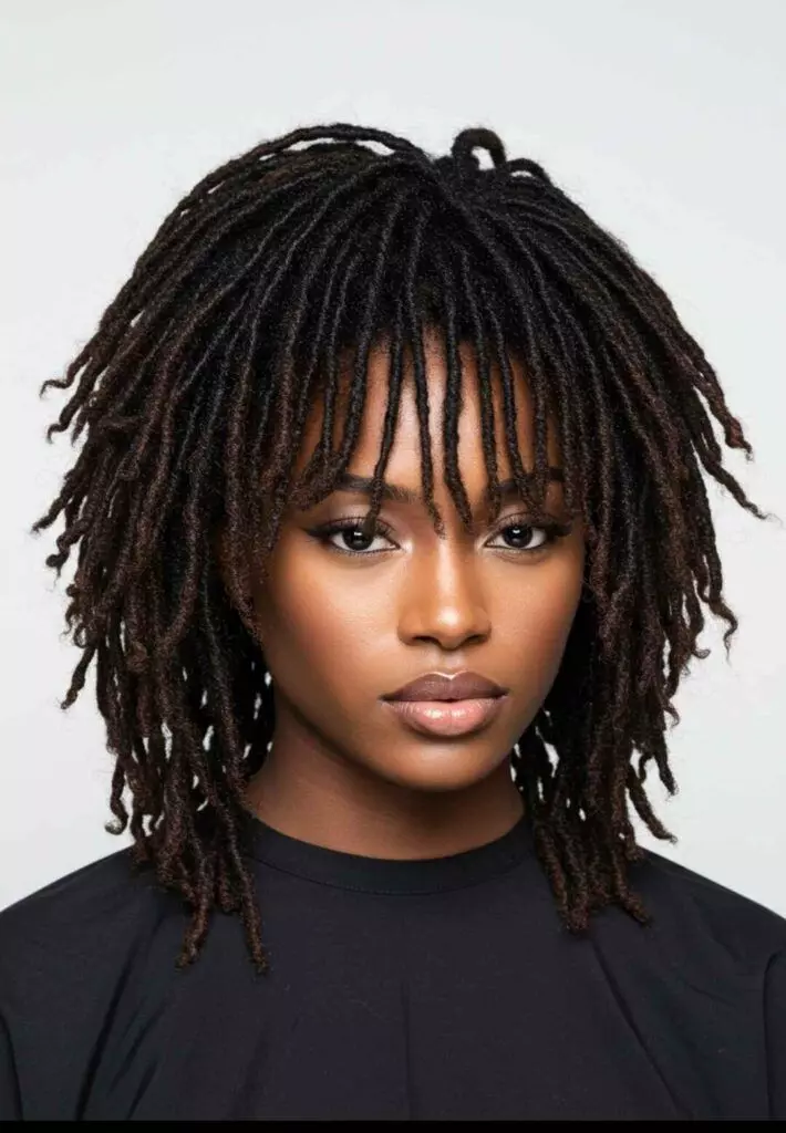 Adding bangs to locs can transform your look instantly. Locs with bangs offer a trendy, youthful appearance while framing the face beautifully. This style works for women of all ages and adds a fresh, contemporary edge to classic locs. Side-swept or curtain bangs can further enhance facial features. Bangs with locs also add a playful, creative vibe to your overall style.