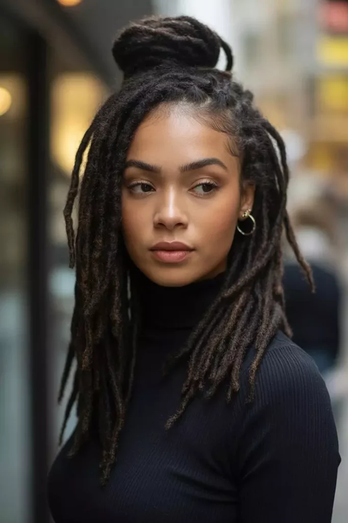 Everyday locs combine comfort and style for women with busy lifestyles. Casual locs styles like loose twists, half-up looks, or simple accessories are perfect for daily wear while maintaining a fashionable edge. These styles are easy to maintain while still looking polished. They allow women to express personal style without extra effort each day.
