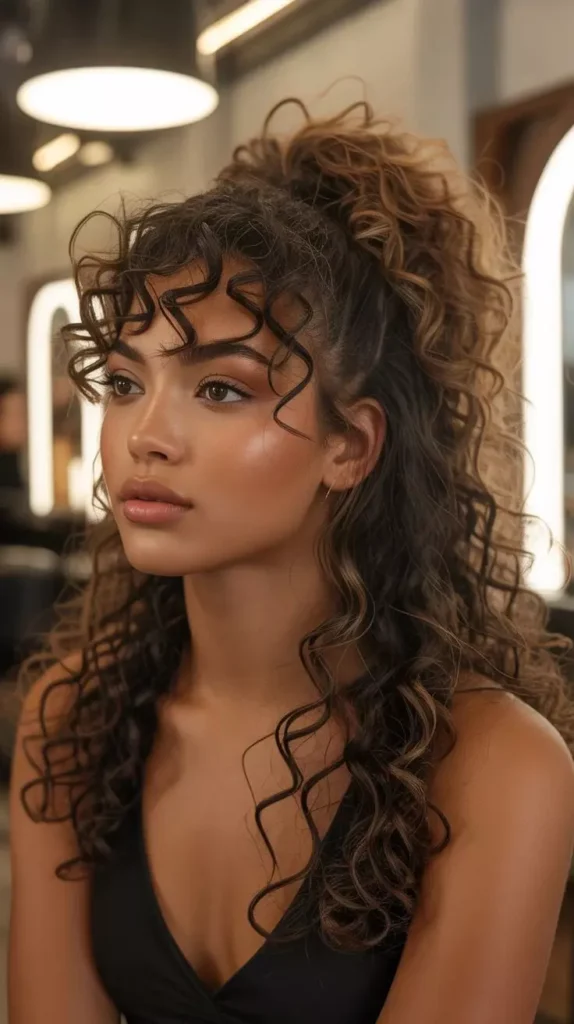 Long curly hairstyles with bangs balance volume and face framing. Curtain bangs, side-swept, or wispy bangs add style without overwhelming curls. Bangs soften the forehead and highlight eyes. Proper care ensures bangs don’t frizz or lose shape. Combining curls with bangs creates a trendy, youthful look.