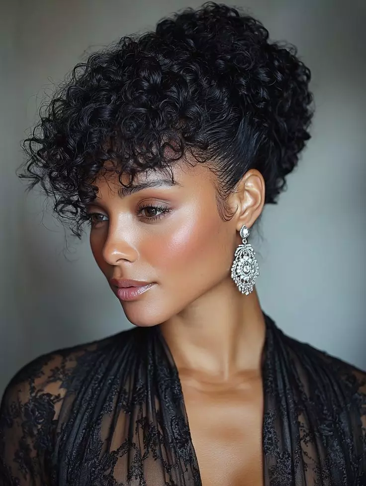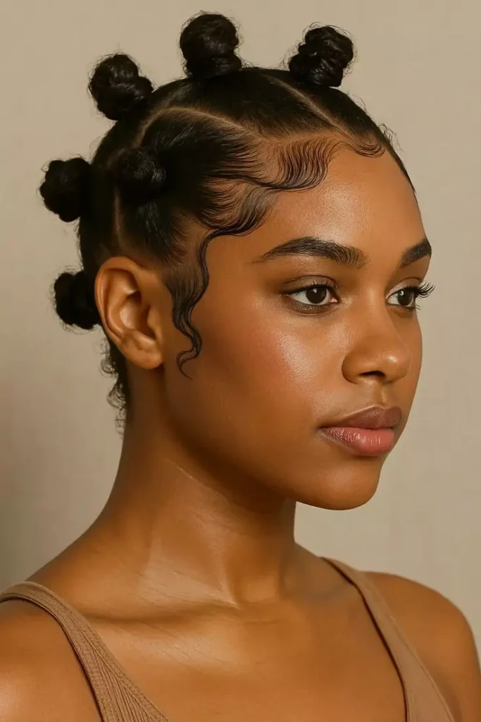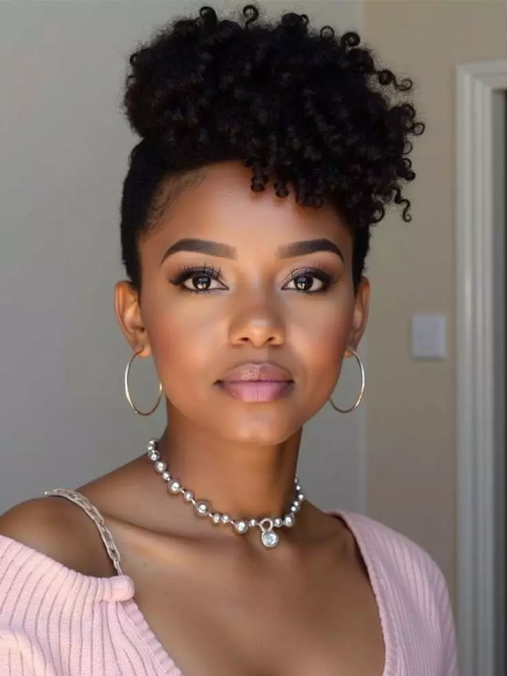 Puff hairstyles are easy and quick to create, making them perfect for busy days. The hair is gathered into one or two puffs, usually on the top or sides of the head. This style highlights natural curls while keeping the hair neat and stylish. It works well for both short and medium-length natural hair.