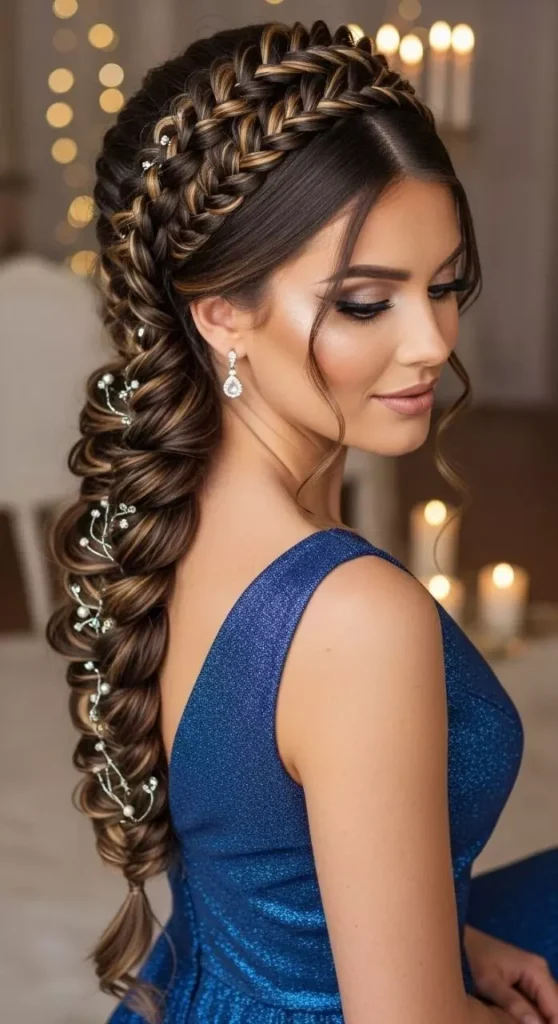 These hairstyles are highly versatile and can suit casual or formal prom dresses. You can add small flowers, beads, or decorative pins to enhance the braid and make it even more eye-catching. Braided prom hairstyles are a favorite among teens who want a sophisticated yet playful style. They give a polished, trendy, and personalized appearance for a memorable prom night.
