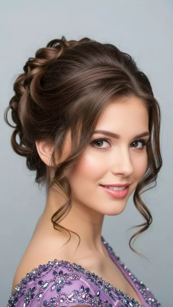 Curly prom hairstyles are perfect for adding volume, drama, and glamour to your overall look. Big bouncy curls, spiral curls, or soft romantic waves give a luxurious and lively feel to your hair. Curly prom hairstyles can suit medium to long hair, and they look amazing with both formal and trendy dresses. These hairstyles can be paired with elegant accessories or left natural for a carefree yet polished look.