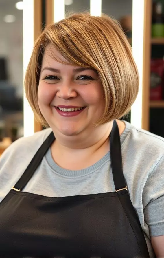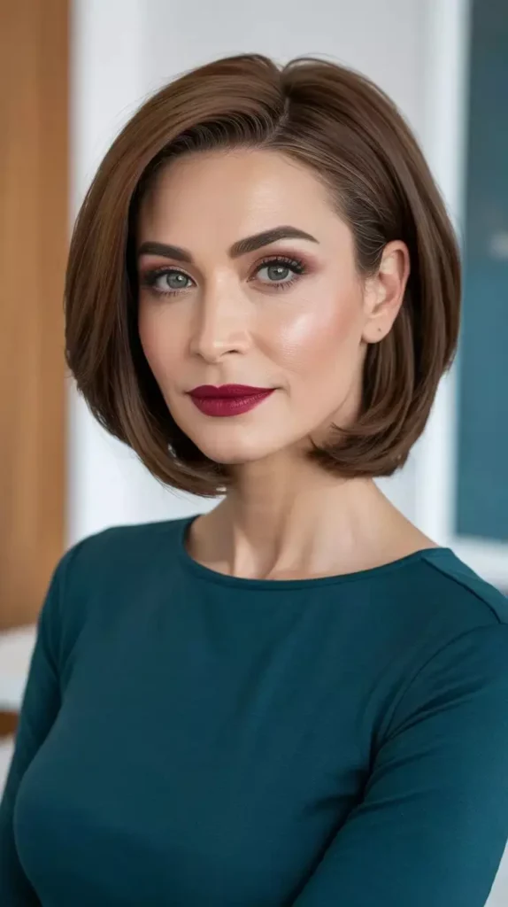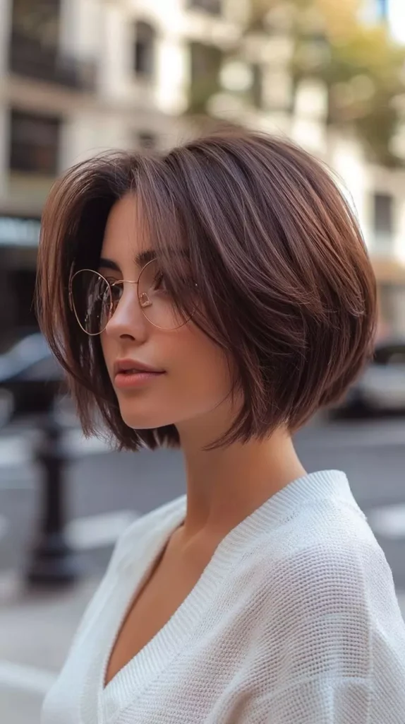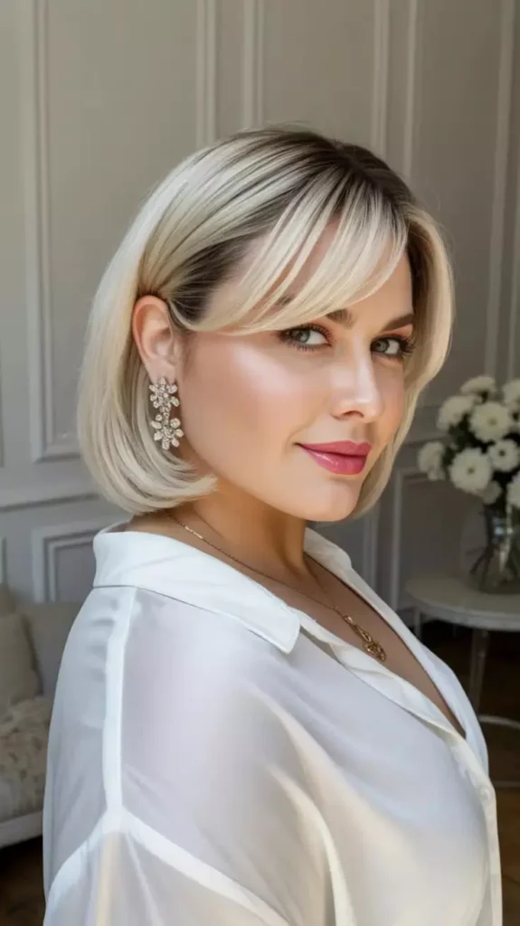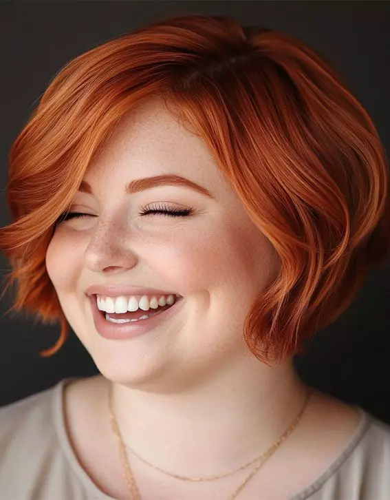 Elegant short bob styles provide a sophisticated option for round face shapes. A slightly angled bob can elongate the face while maintaining a clean and polished look. This hairstyle is perfect for both professional and casual settings, and it offers a timeless and graceful style.