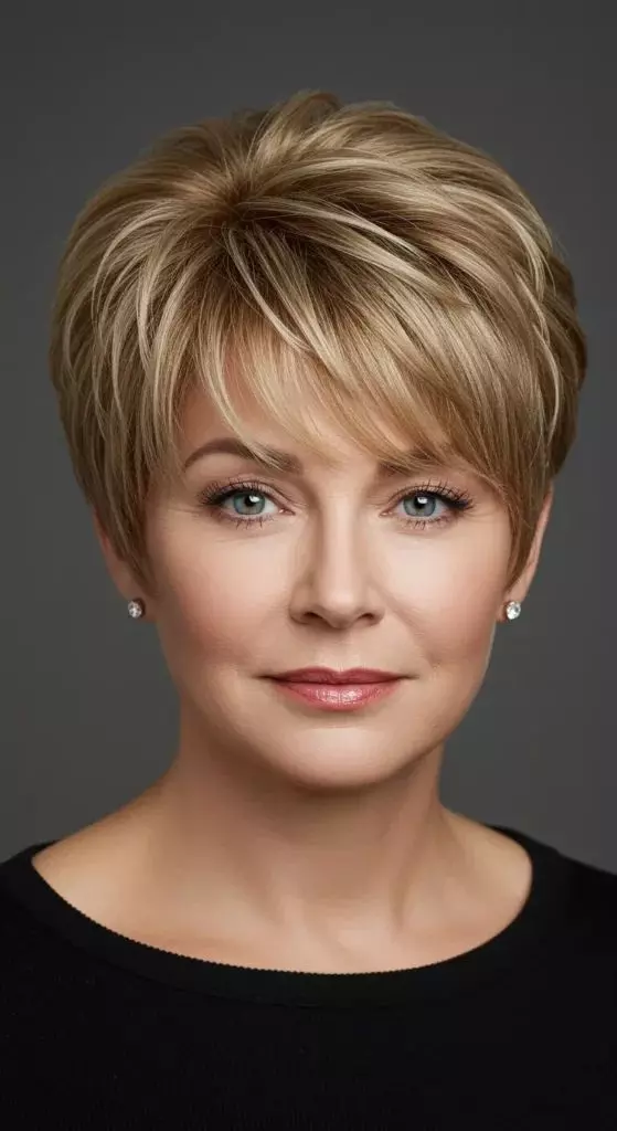 Modern short haircuts can beautifully enhance round face shapes by adding structure and balance. Styles with layers, texture, and volume on top help create the illusion of a longer face. Haircuts like textured bobs and modern pixie cuts are especially popular because they frame the face while keeping the look fresh and stylish, and these hairstyles are perfect for women who want a modern and flattering look.