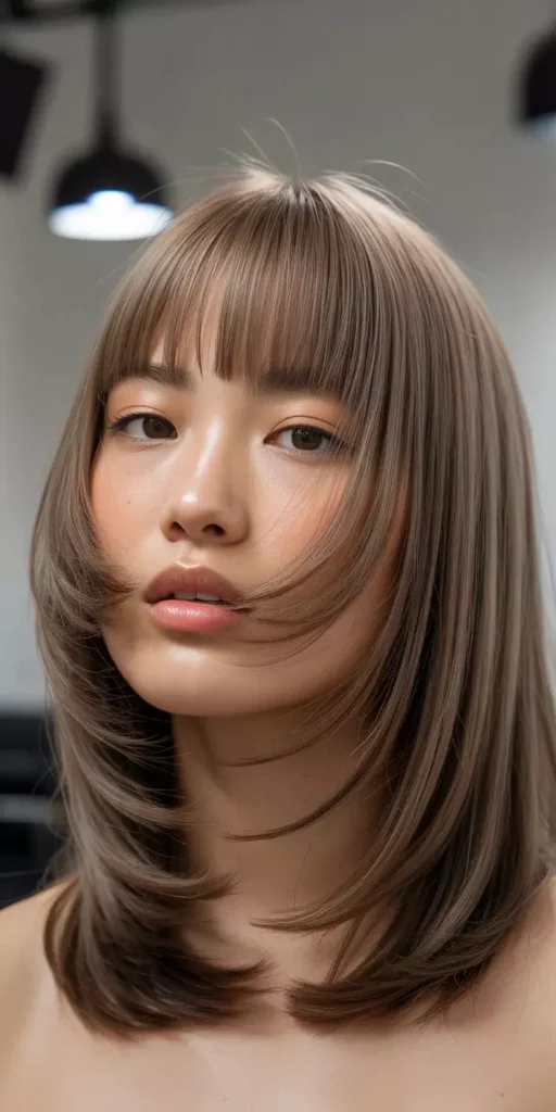Adding bangs can instantly refresh your look and bring attention to your eyes. A Stylish Shoulder Length Hairstyle with bangs adds a playful and youthful element to your hair. You can choose between side-swept, curtain, or blunt bangs depending on your face shape. Bangs also pair beautifully with layers or waves, creating a modern, stylish appearance. This combination makes your shoulder length hair look more dynamic and versatile. Bangs can also help balance wider foreheads or add softness to sharp jawlines.